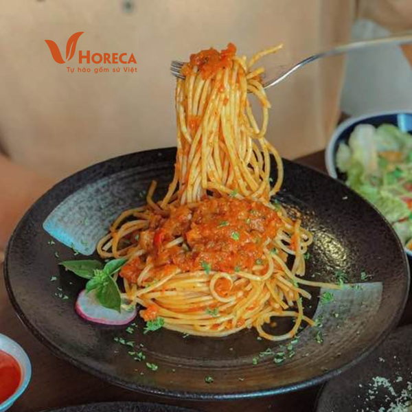 Dĩa #Noir của V Horeca với gam màu đen có vệt tự nhiên làm dĩa mỳ vừa ngon vừa cuốn,