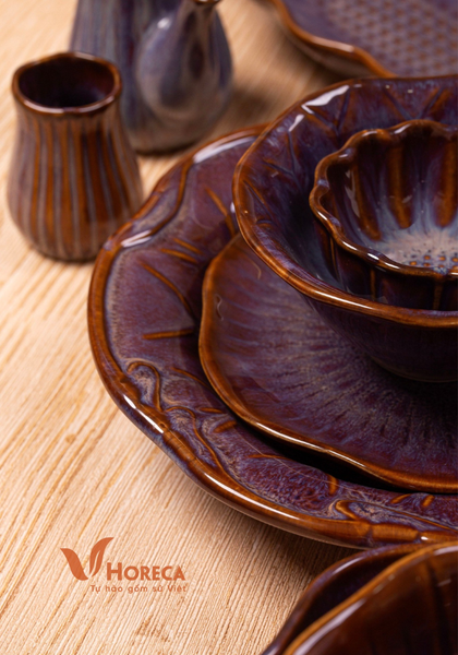 Thứ Bảy tuần trước, tôi cùng mẹ ghé vào một cửa hàng quen thuộc trên phố để tìm bộ bàn ăn mới cho gia đình. Đã lâu rồi, chúng tôi chưa sắm sửa gì cho gian bếp, nên cả hai mẹ con đều thấy háo hức. Giữa muôn vàn kiểu dáng, màu sắc, ánh mắt tôi dừng lại ngay ở Bộ Bàn Ăn Gốm Sứ Sen Ombré - bộ sản phẩm mang tông nâu trầm dịu mắt, sang trọng, với những đường viền cong mềm mại như cánh sen.Lấy cảm hứng từ sen – loài hoa thuần khiết của người Việt.