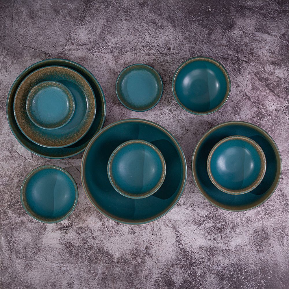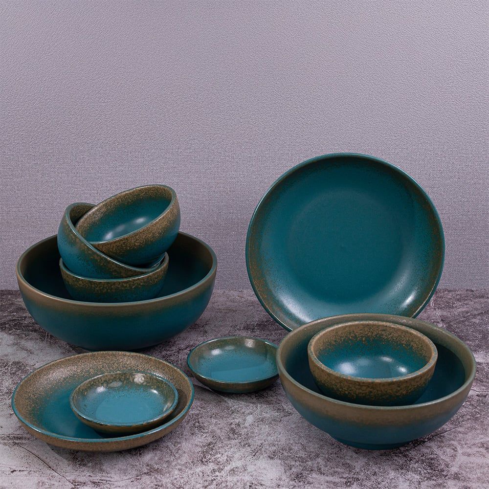 Aphrodite - Family Set 10pcs - Bộ bàn ăn 4 người xanh ngọc bích viền nâu (matte) (10 món)