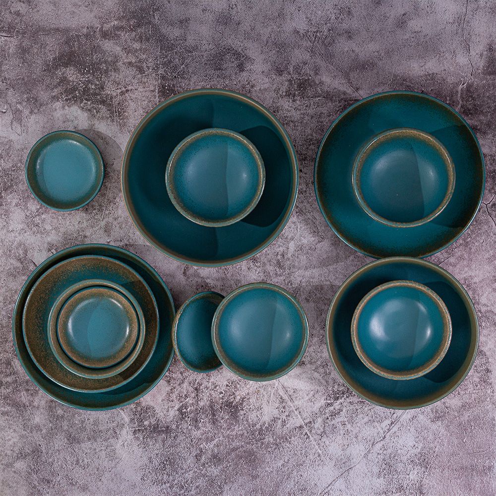 Aphrodite - Family Set 14pcs - Bộ bàn ăn 6 người xanh ngọc bích viền nâu (matte) (14 món)