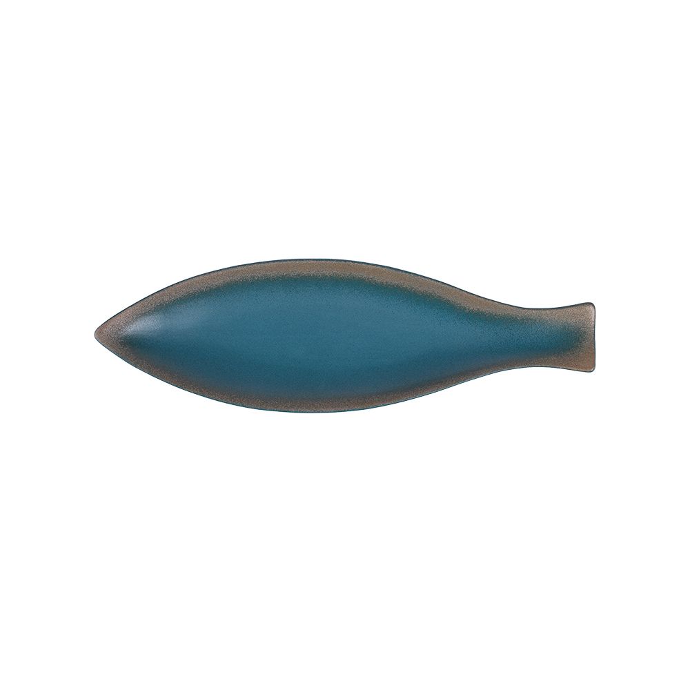 Aphrodite - Long Fish Plate 40.5cm - Dĩa cá dài 40.5cm xanh ngọc bích viền nâu (matte)