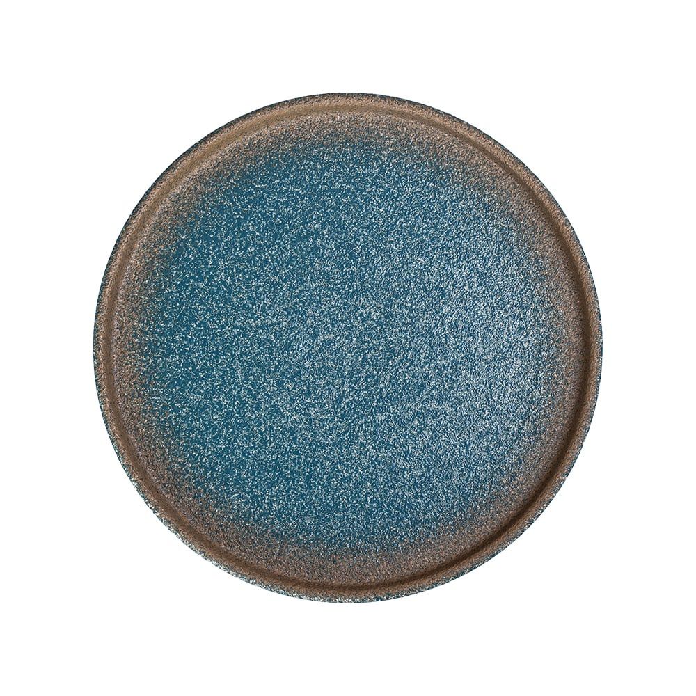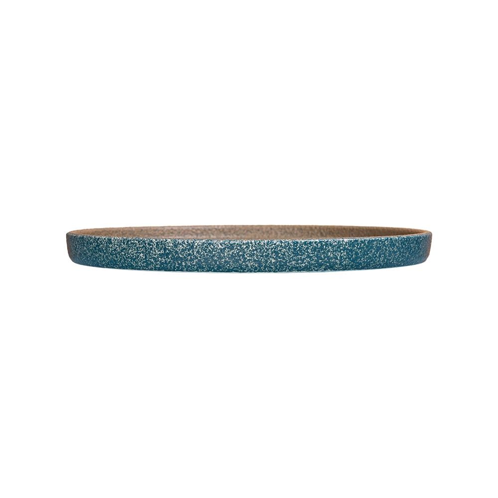 Aphrodite - Round Flat Plate 16cm - Dĩa tròn vành đứng 16cm xanh ngọc bích viền nâu phun hạt (matte) (Sandy collection)