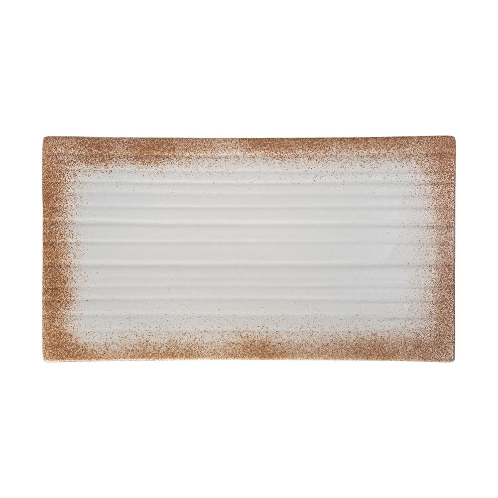 Ariel - Rectangular Plate 33 x 18cm - Dĩa chữ nhật phẳng 33 x 18cm xanh ngọc viền nâu (matte) (Sandy collection)