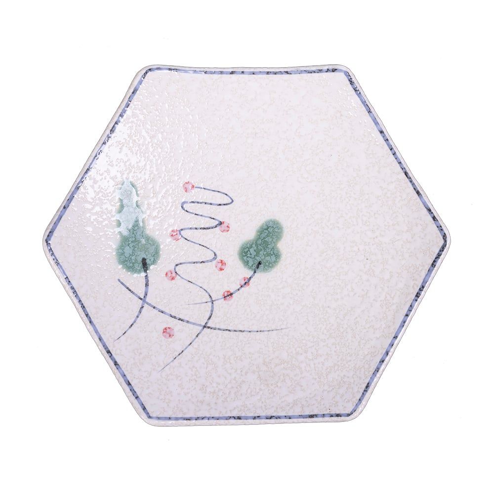 Blanche - Hexagon Plate 24 x 21cm - Dĩa 6 cánh 24 x 21cm phun vẽ lá (Leaf Dance collection)