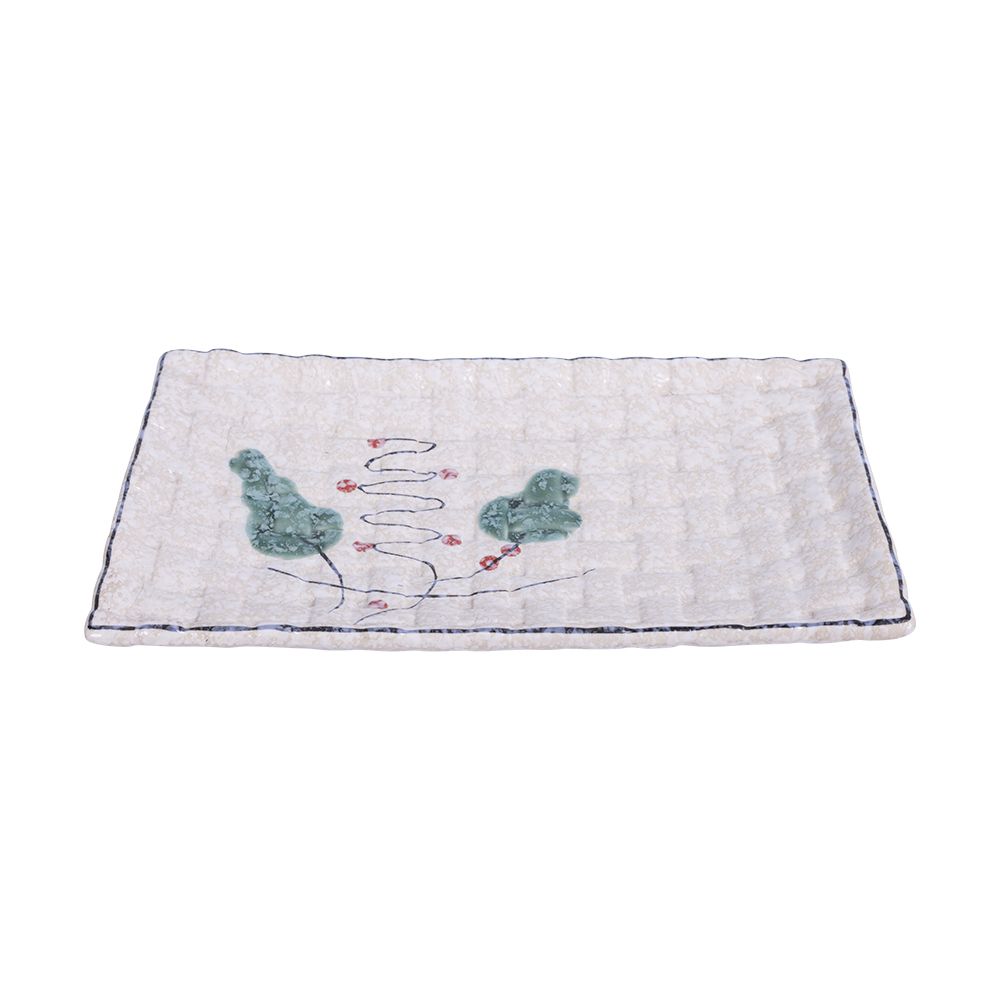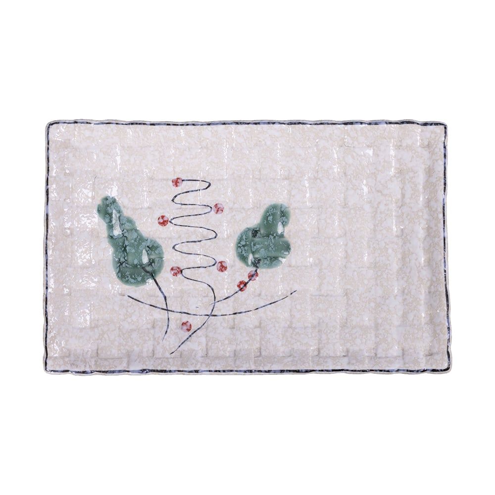 Blanche - Rectangular Plate 19 x 12 x 2.3cm - Dĩa chữ nhật 19 x 12 x 2.3cm phun vẽ lá (Leaf Dance collection)