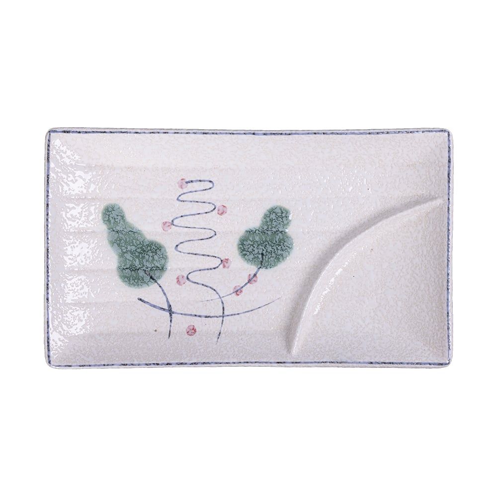 Blanche - Rectangular Plate 20 x 11.5cm - Dĩa chữ nhật có ngăn 20 x 11.5cm phun vẽ lá (Leaf Dance collection)