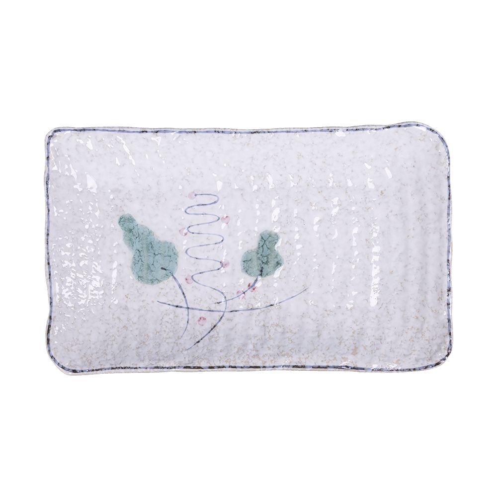Blanche - Rectangular Plate 26 x 16cm - Dĩa chữ nhật 26 x 16cm phun vẽ lá (Leaf Dance collection)