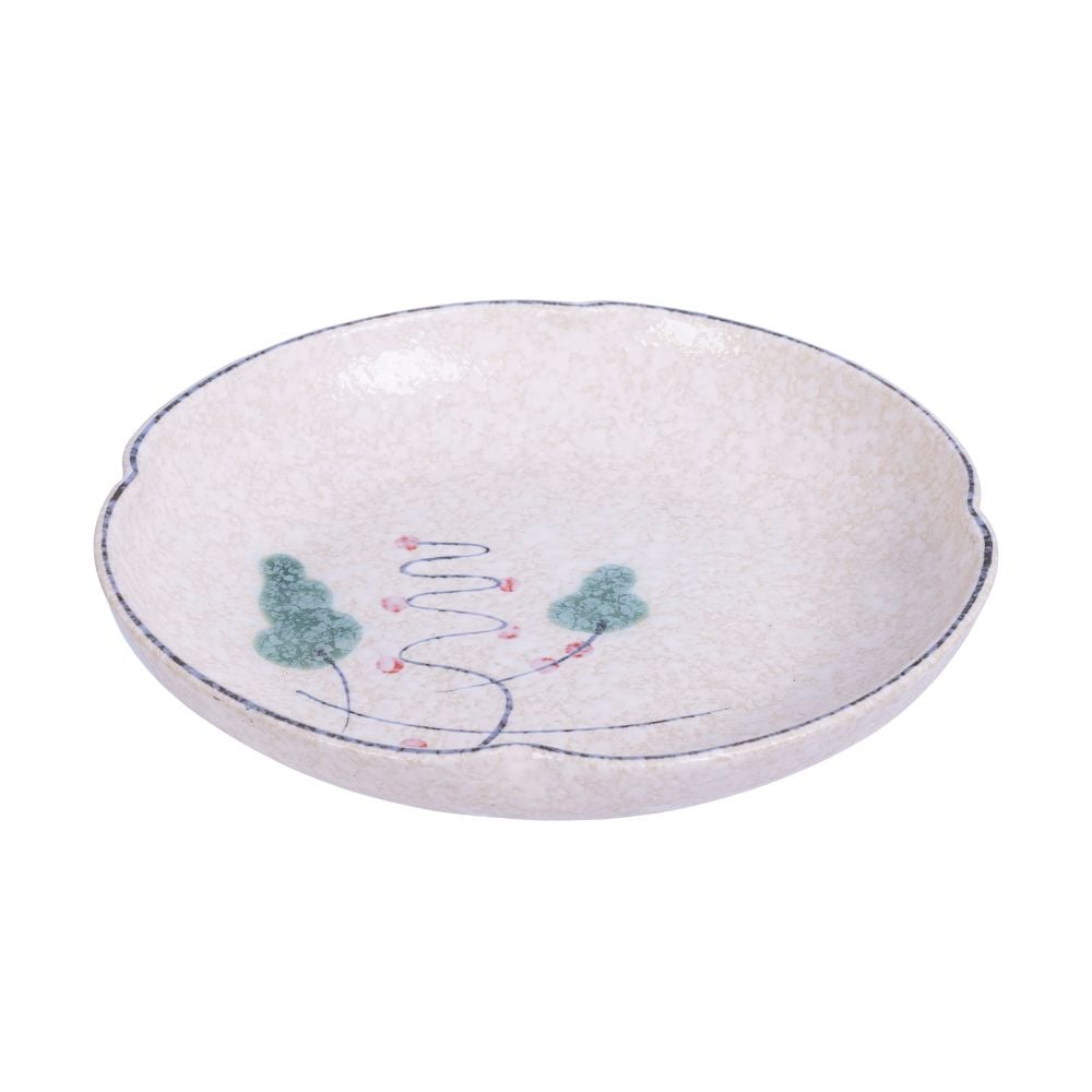 Blanche - Round Coup Plate 18cm - Dĩa ảo bóp 4 cánh 18cm phun vẽ lá (Leaf Dance collection)