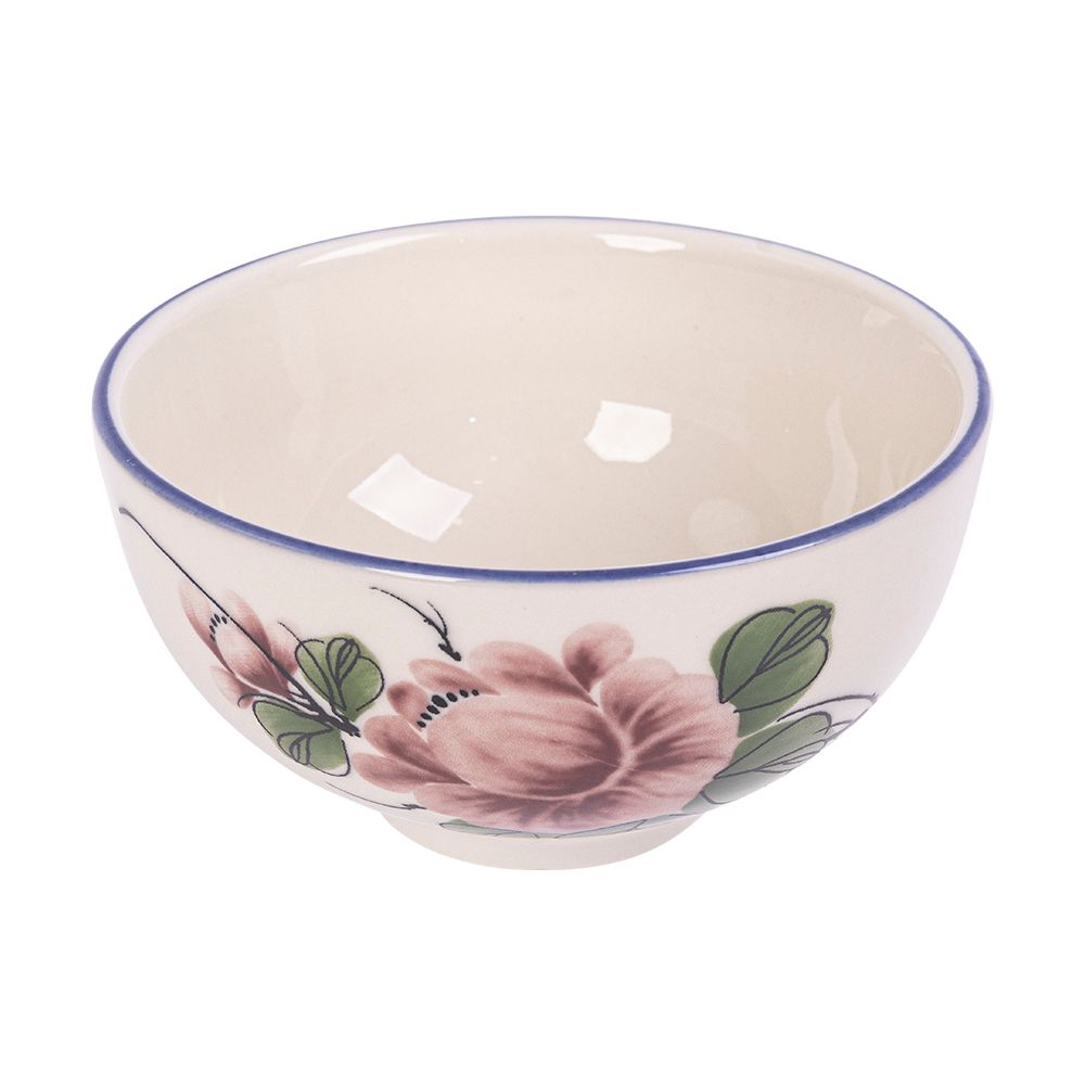 Cream - Rice Bowl 11.5 x 6cm - Chén cơm 11.5 x 6cm màu kem hoa mẫu đơn hồng (Peony collection)