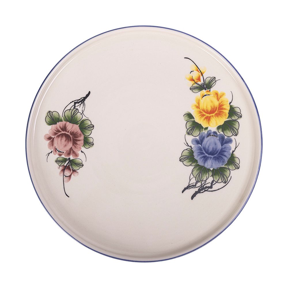 Cream - Round Flat Plate 26cm - Dĩa tròn vành đứng 26cm màu kem hoa mẫu đơn (Peony collection)