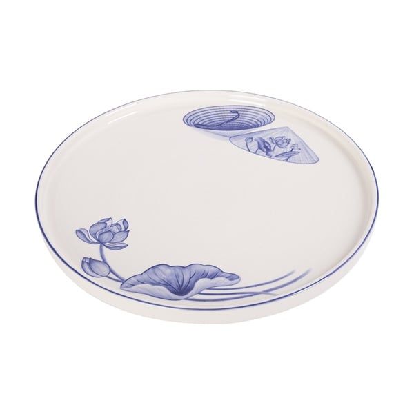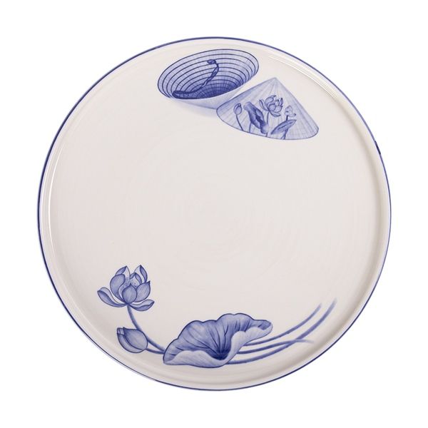 Cream - Round Flat Plate 26cm - Dĩa tròn vành đứng 26cm The Nón Lá (Bonjour Vietnam collection)