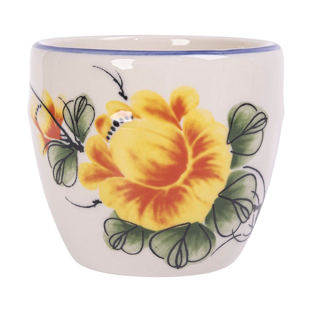 Cream - Tea Cup 140ml - Ly trà bầu 140ml màu kem hoa mẫu đơn vàng (Peony collection)