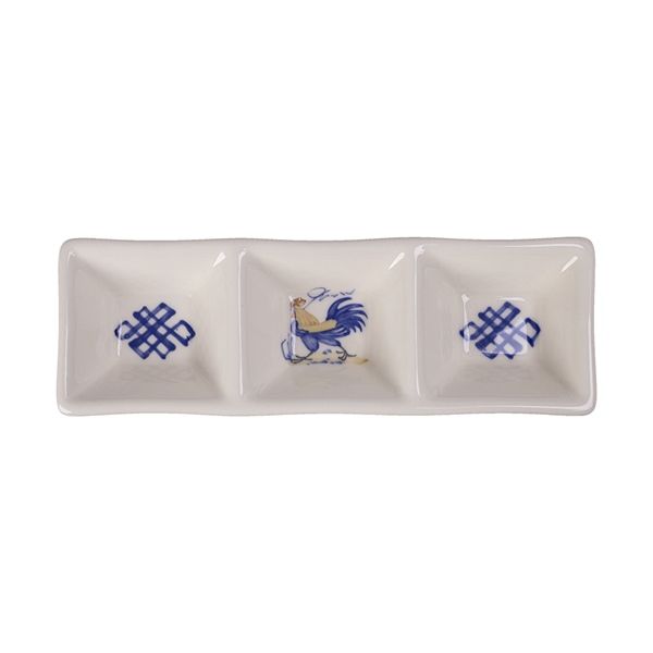 Cream - 3-compartment Sauce Dish 19.6 x 6.6 x 2.7cm - Dĩa chấm 3 ngăn 19.6 x 6.6 x 2.7cm Sắc Màu Thôn Quê (Le Coq collection)