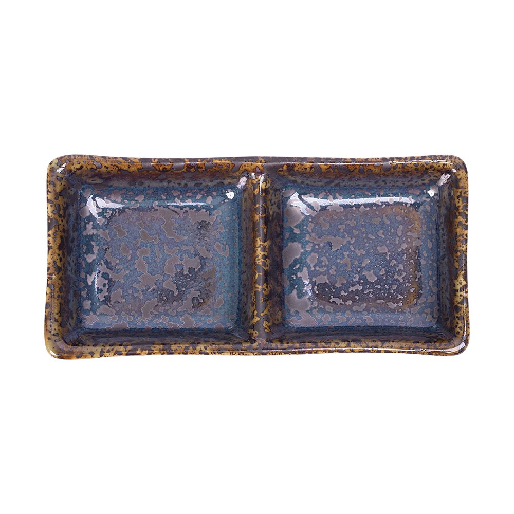 Seaweed - 2-compartment Sauce Dish 12 x 6cm - Dĩa 2 ngăn nhỏ 12 x 6cm xanh rêu kim sa (Sparkling collection)