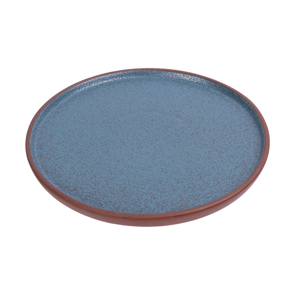 Terracotta - Round Flat Plate 22cm - Dĩa tròn vành đứng 22cm tử sa phun xanh ngọc bích